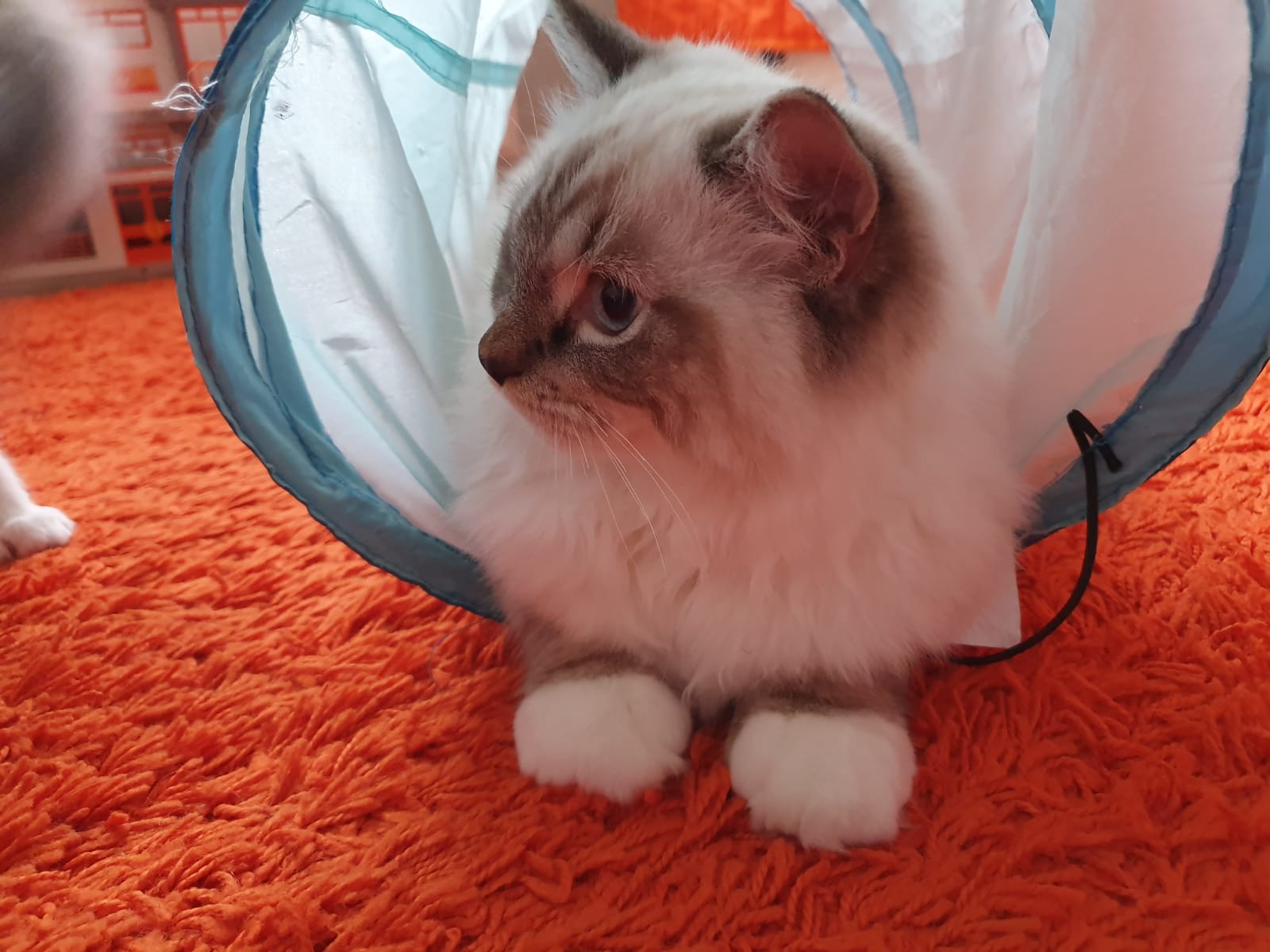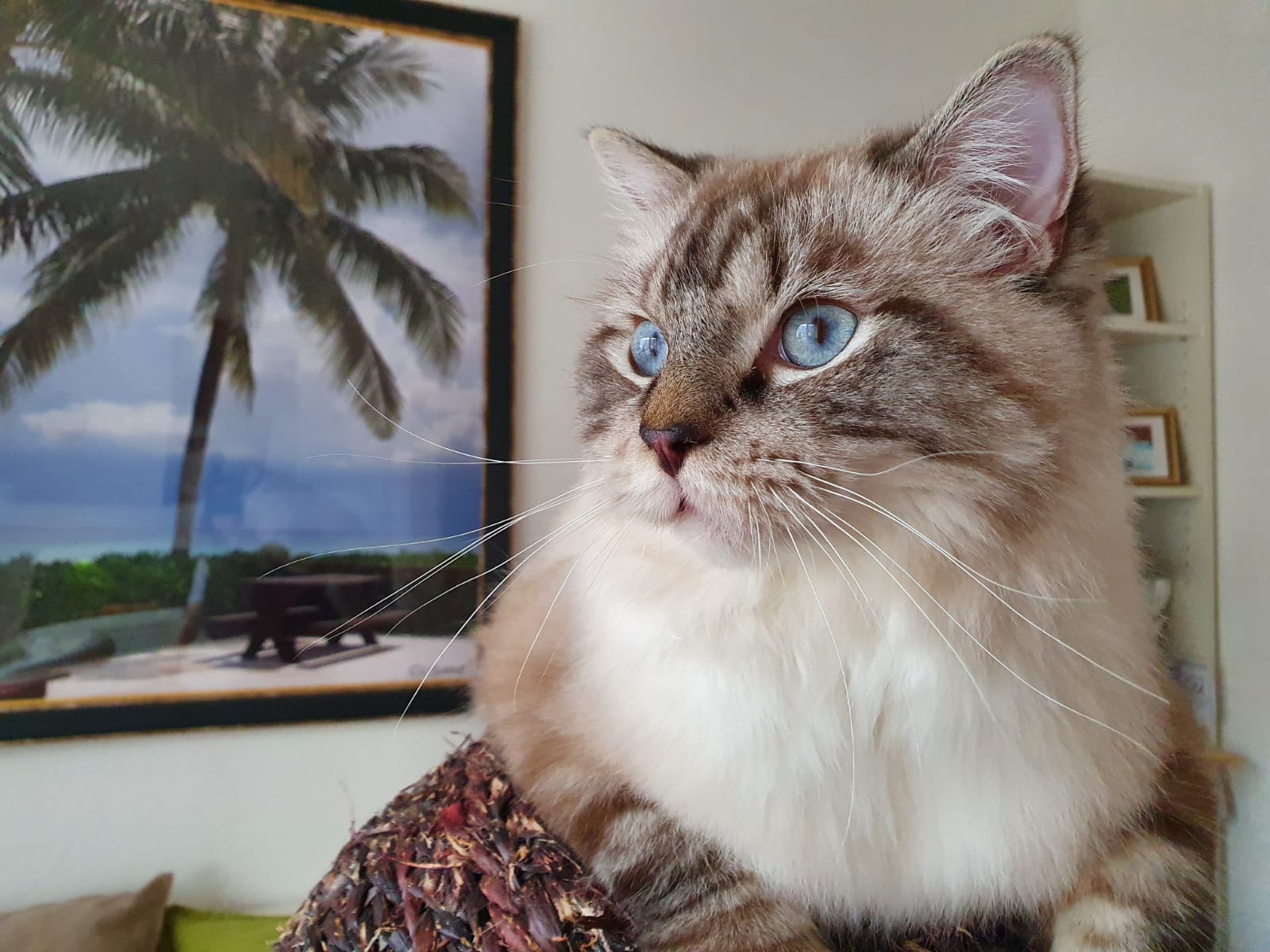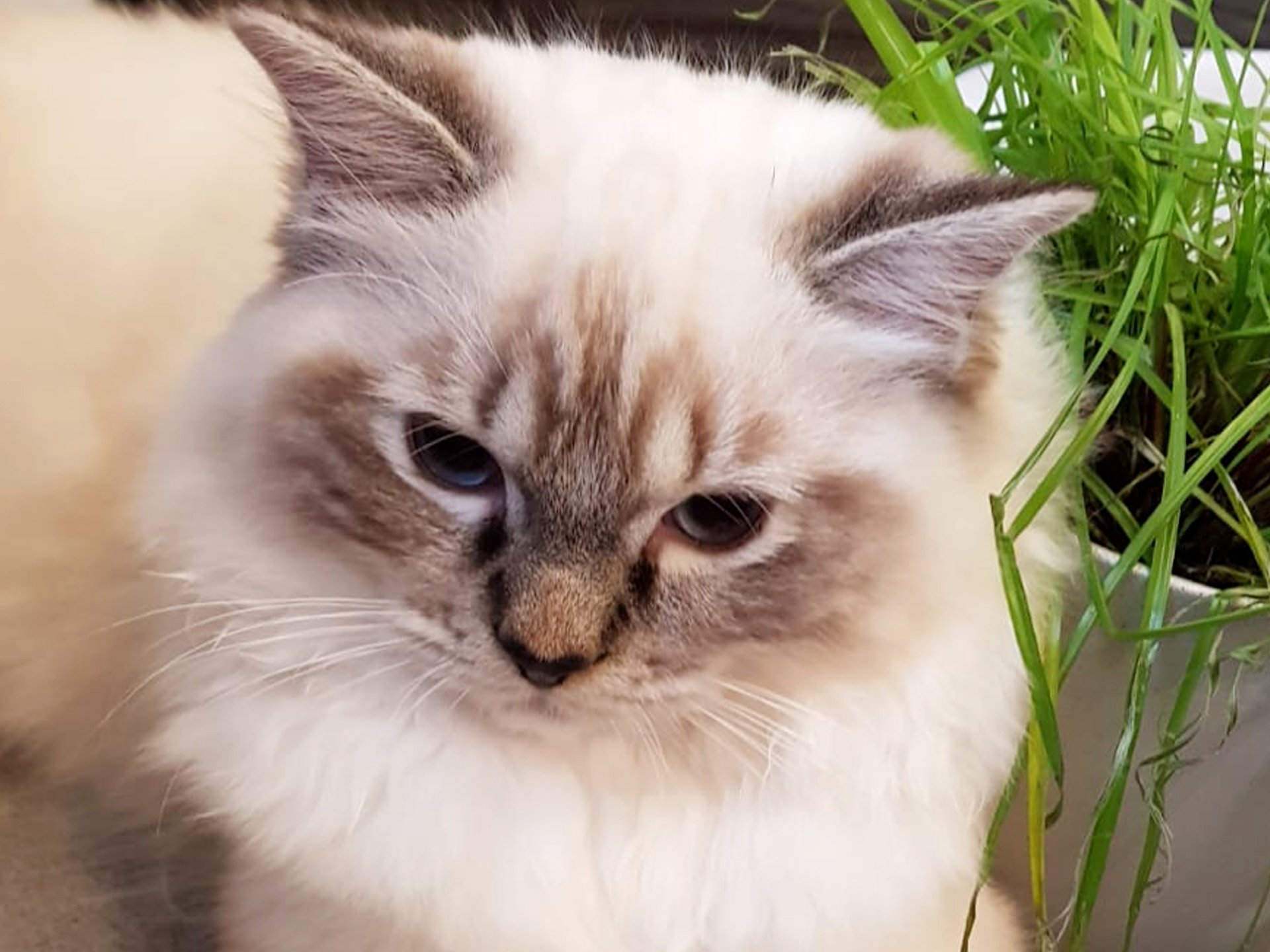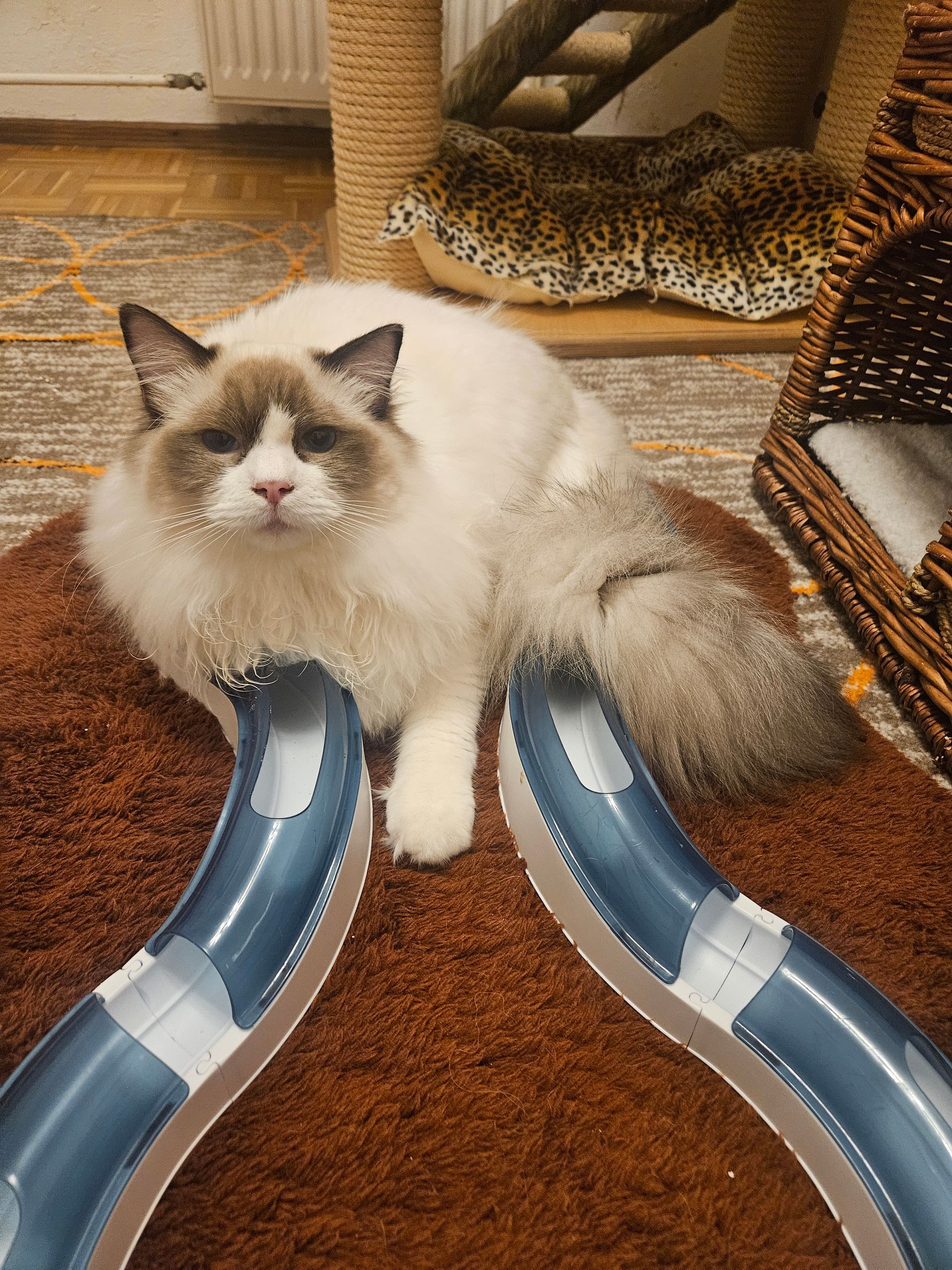 Das Fell der Ragdoll wirkt pflegeaufwendiger, als es in Wirklichkeit ist. Es verfilzt kaum und bildet selten Knötchen. Gelegentliches Bürsten reicht in der Regel, um den seidigen Pelz gepflegt zu halten. Während des Fellwechsels ist tägliches Bürsten ratsam, um die losen Haare zu entfernen. Ragdolls tendieren dazu, Fett am Unterbauch anzusetzen. Daher sollten Sie bei erwachsenen Katzen regelmäßig das Gewicht kontrollieren. Jungtiere mit schnellen Wachstumsschüben können zeitweise einen erhöhten Nahrungsbedarf haben. Bitte achten Sie bei Ausstattung, Kratzbaum und Liegeplätzen für Ihre "Riesenkatze" auf besondere Stabilität und passende Dimensionen.