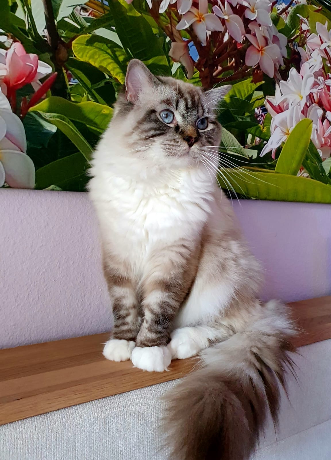 Kopf, Ohren, Beinen und am Schwanz eine dunkle Färbung. Endgültig ausgeprägt ist die Zeichnung allerdings erst, wenn die Katze etwa zwei Jahre alt ist.